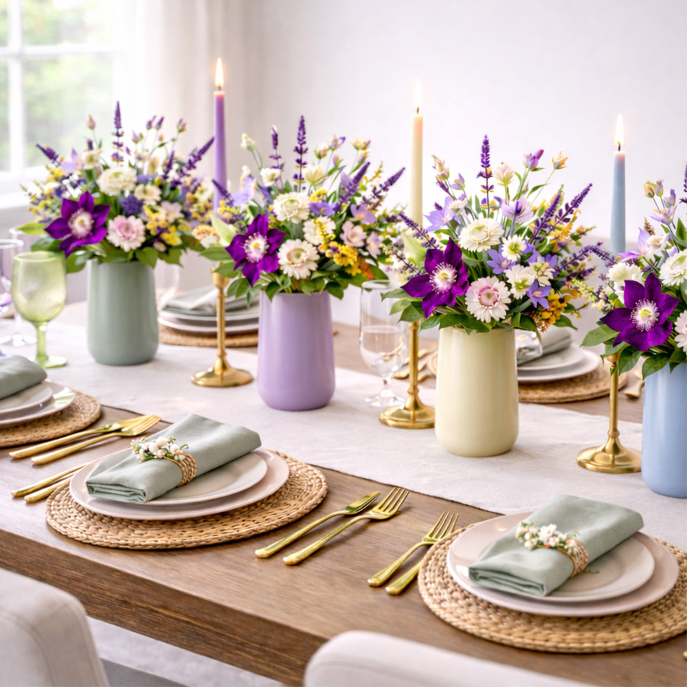 - Product Highlights: The lively colors and varied shapes and sizes in this artificial bouquet set of four create striking visual interest.