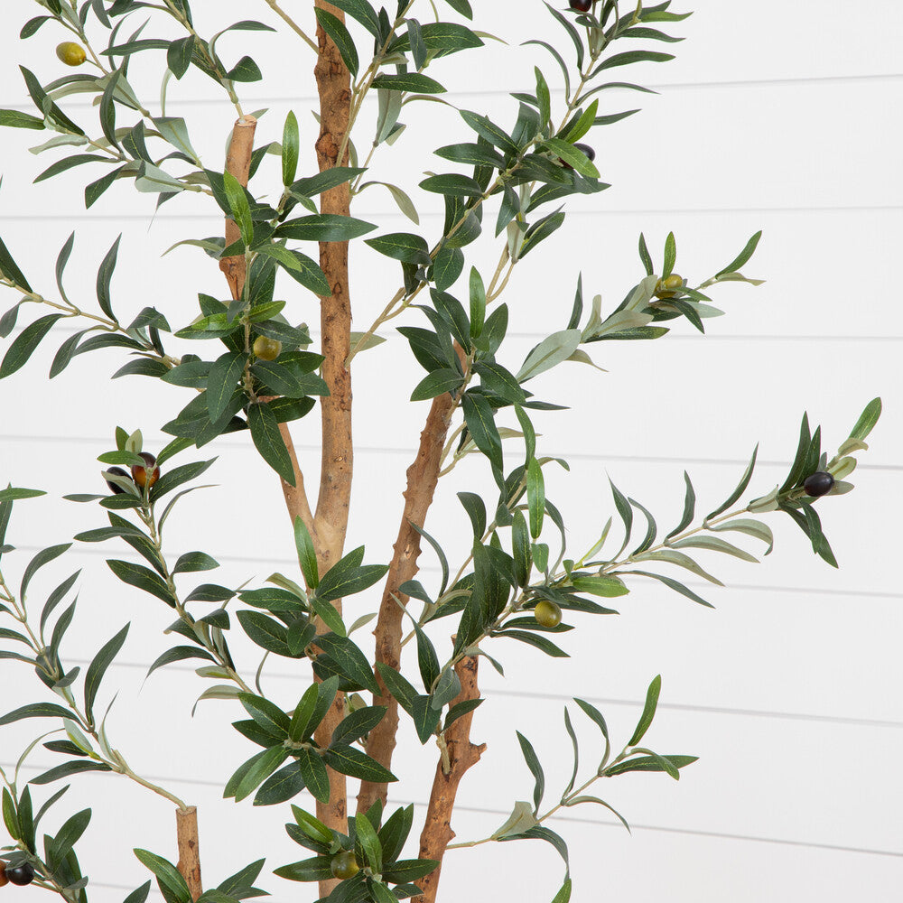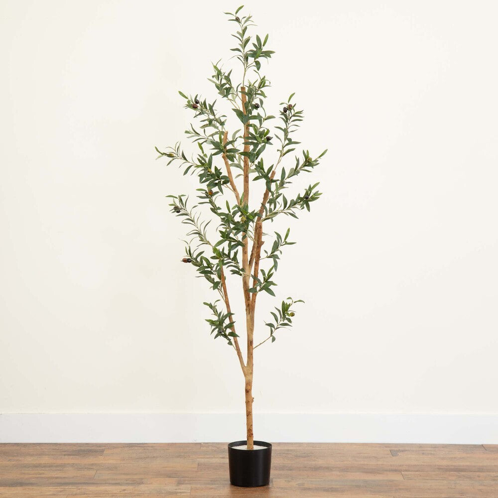 Embrace the Mediterranean lifestyle with this elegant artificial olive tree showcasing a sparse design with 690 variegated olive leaves adorned by small olives, a delicacy in the region. Standing at 5.5' tall from its black nursery pot, customize this tree with the planter of your own to make it truly unique. Incredibly lifelike, easy-to-bend branches allow you to shape this tree as you desire fit to your space. Decorate your office, living room, or kitchen nook for an elegant, fresh touch.