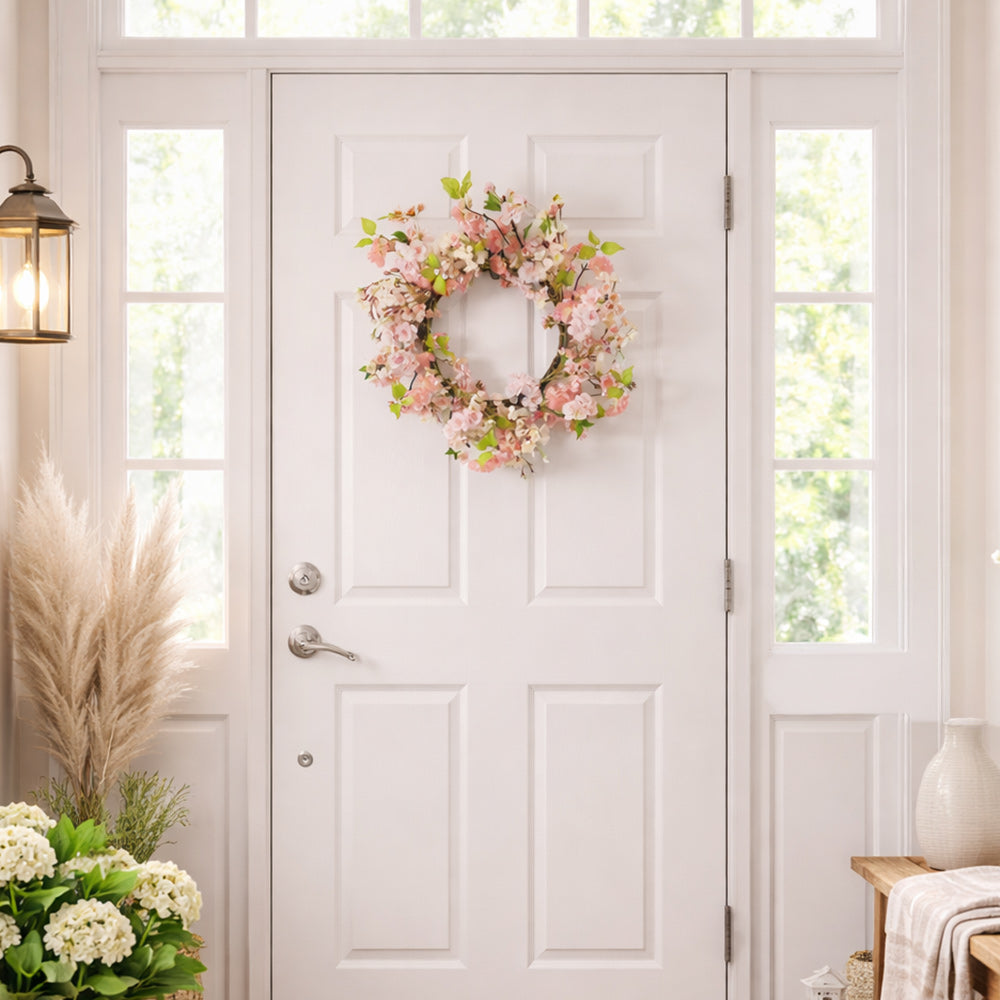 - Product Highlights: Inspired by the fleeting beauty of cherry blossoms in bloom, soft pastel colors and delicate artificial flowers come together in a beautifully arranged wreath that brings instant tranquility year-round.
